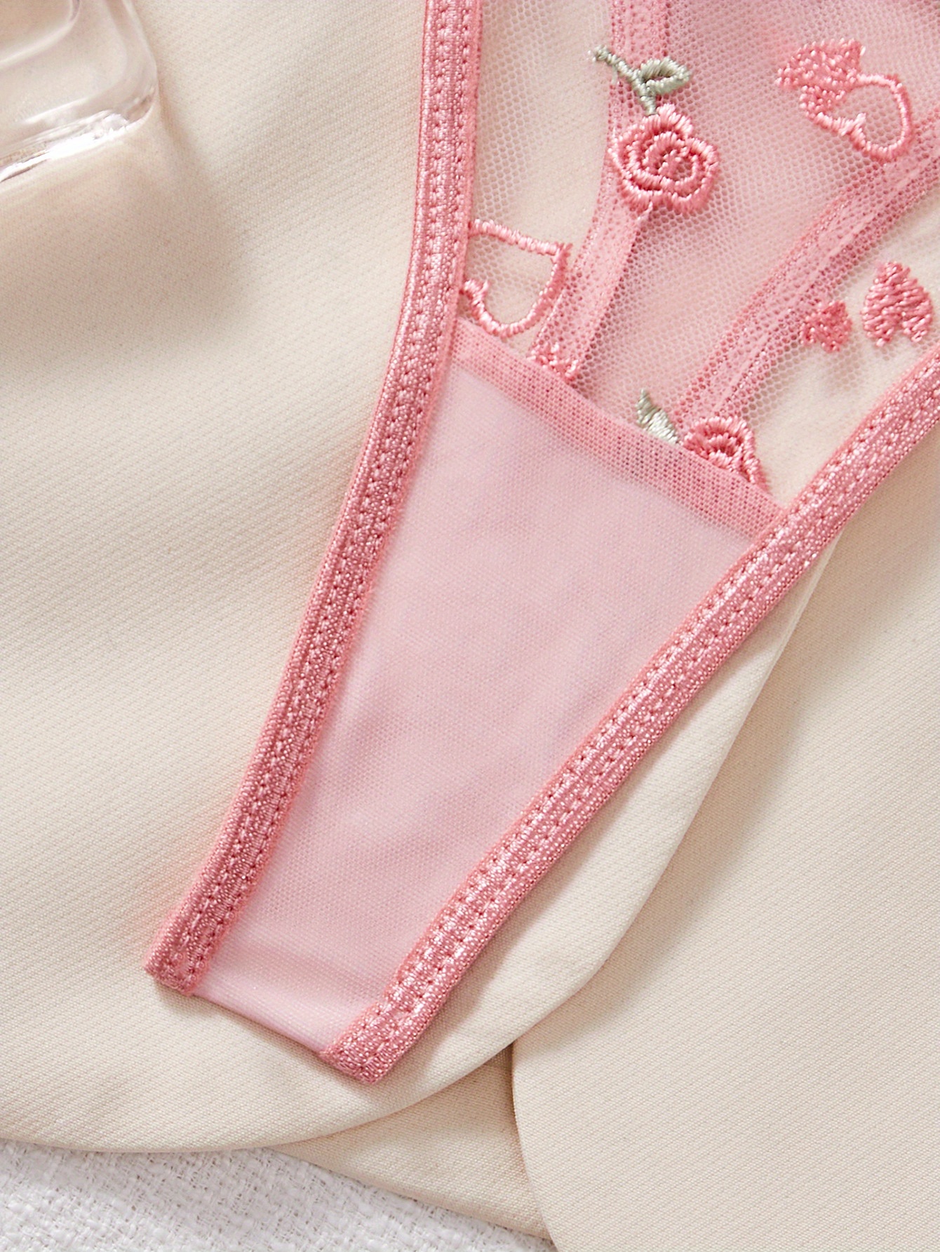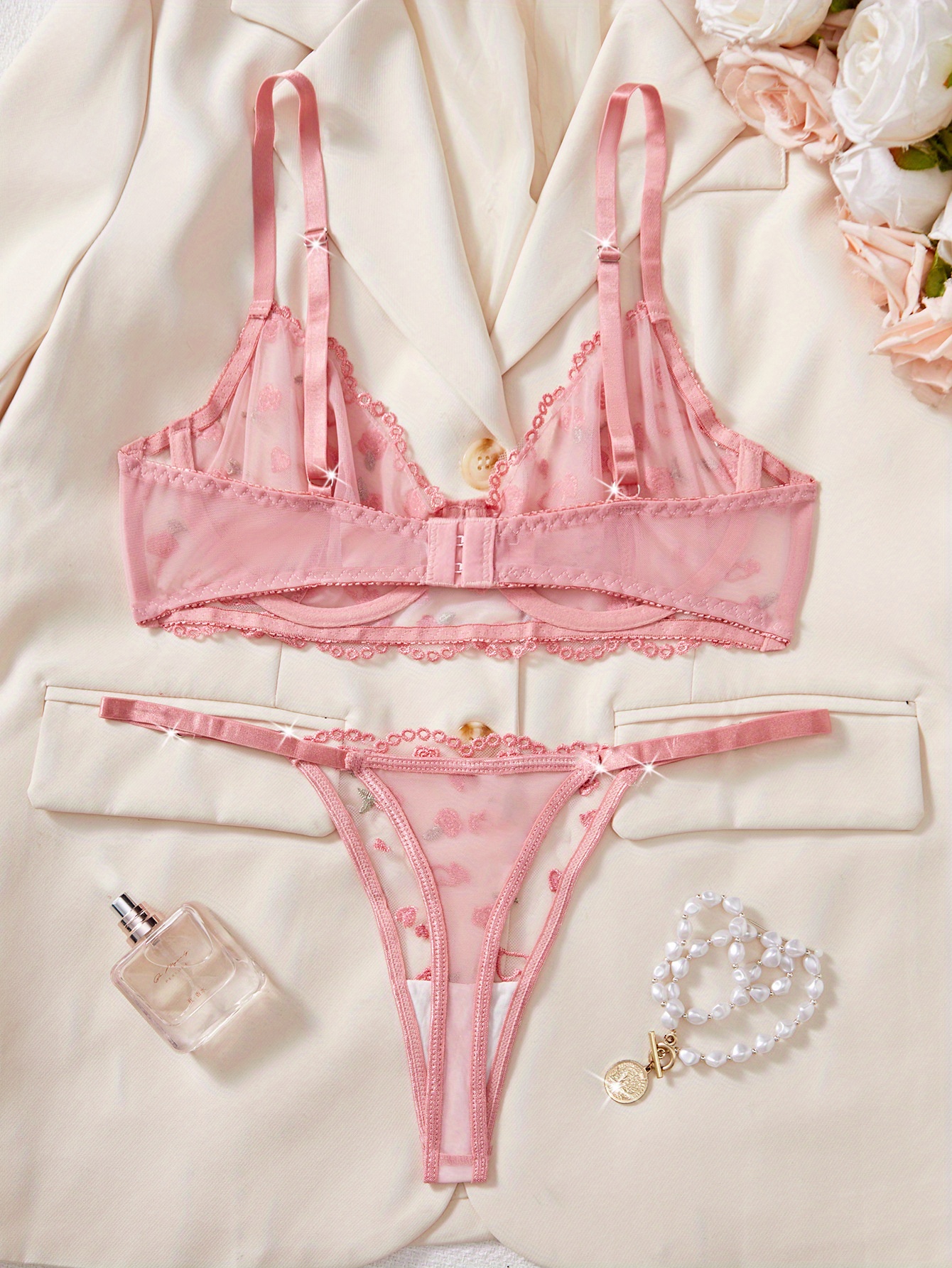 Floral Sheer Lingerie Set - Ultra Thin See-Through Bra & G-String with 3D Embroidery, Push Up & Sexy for Women, Comfortable Stretchy Mesh